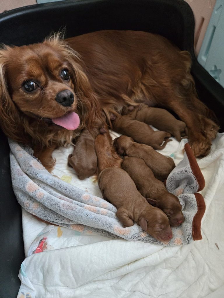 Unsere Cavalier King Charls Hündin Ivy hat am 24.12.2024 6 kleine Cavapoo Welpen zur Welt gebracht alle sind gesund und munter und die Mutter ist sichtlich stolz